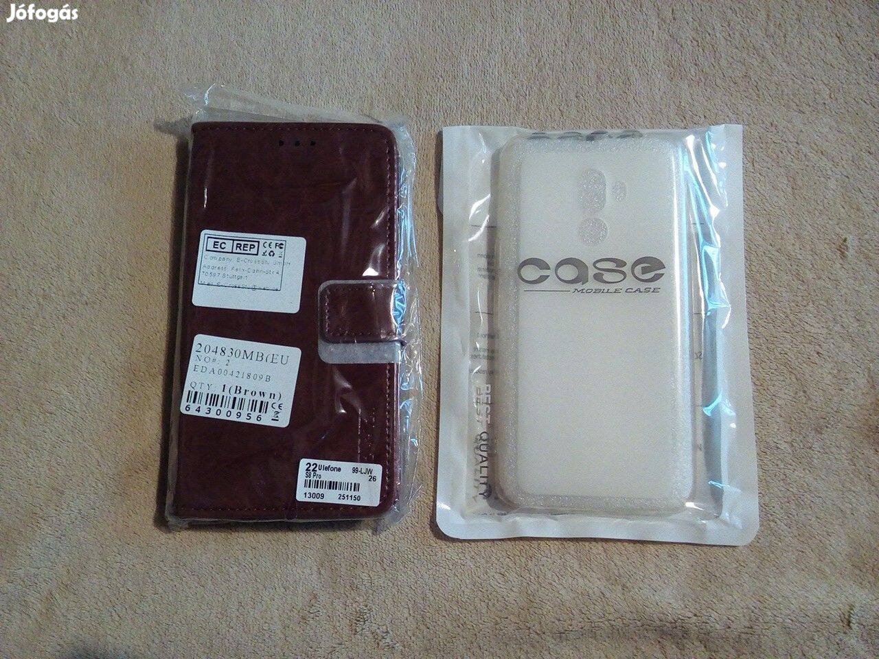 Eladó a képen is látható vadonat új bontatlan ulefone S8 pro okostelefon flip tok oldalra kihajthatós barna színben, és hozzá vadonat új szilikon mobile case.