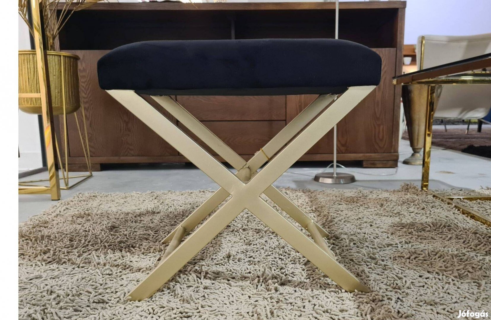 Elegáns leülőke, arany színű lábbal, fekete bársony szövettel