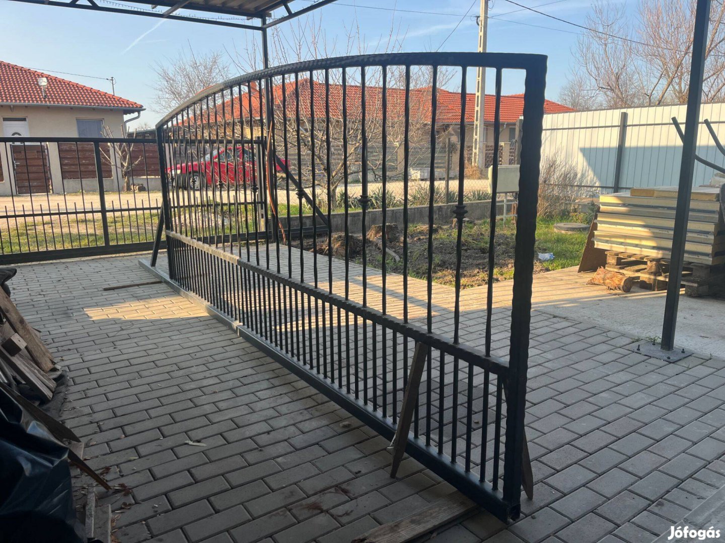 Bontott kovácsoltvas jellegű úszókapu, galvanizált, szinterezett.