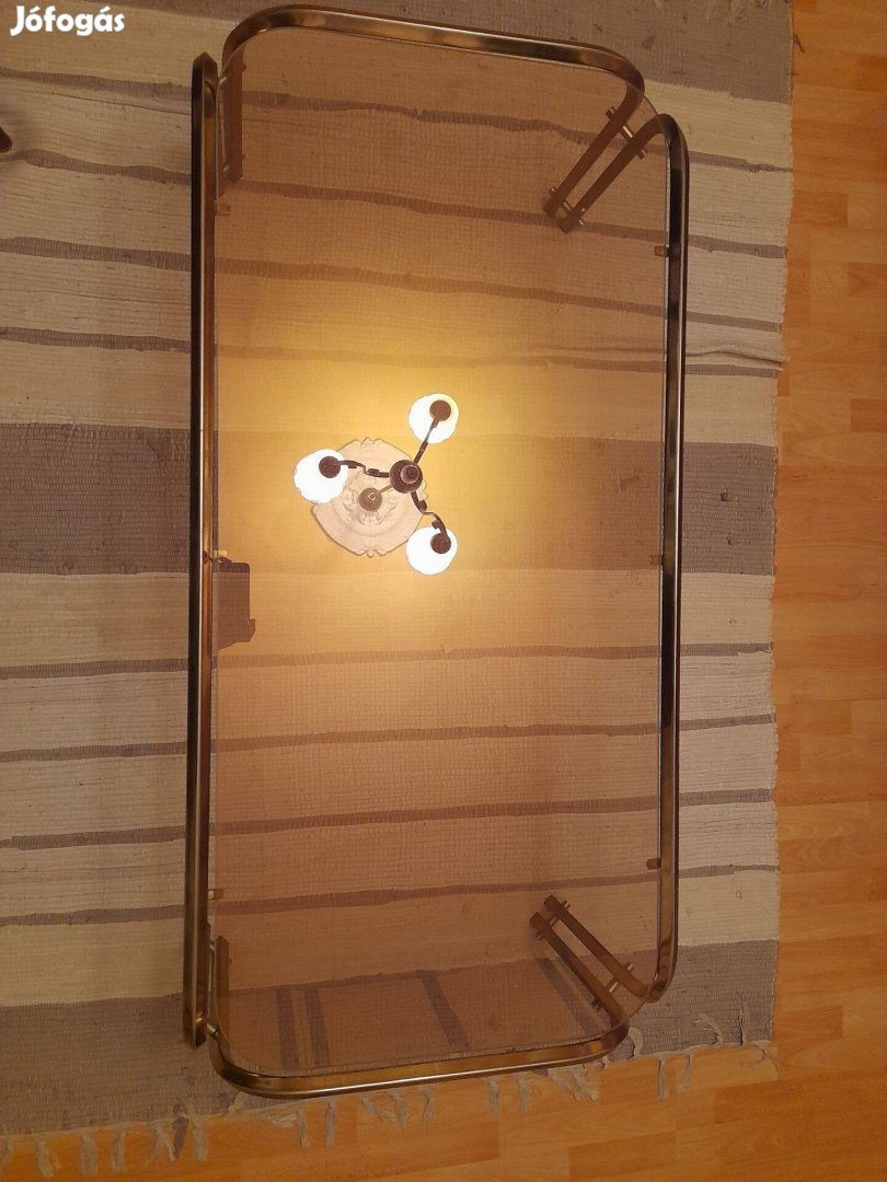 Eladó arany színű keretű sötét üveg lapú dohányzóasztal.