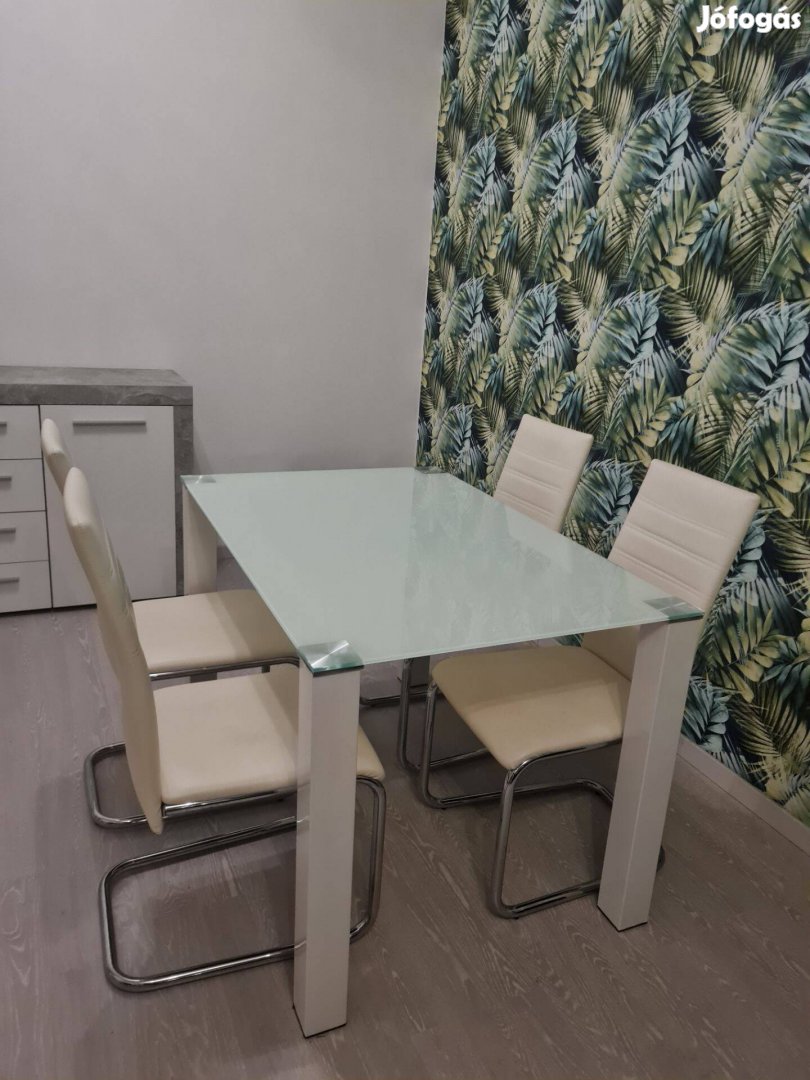 Üveg ebédlőasztal 4 db székkel