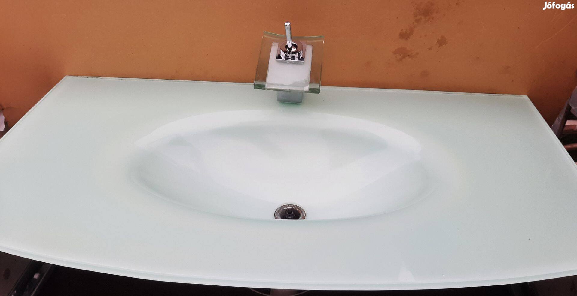 Eladó, sérülésmentes, vastag üvegfalú, mosdókagyló, csapteleppel. Méret : 100x54