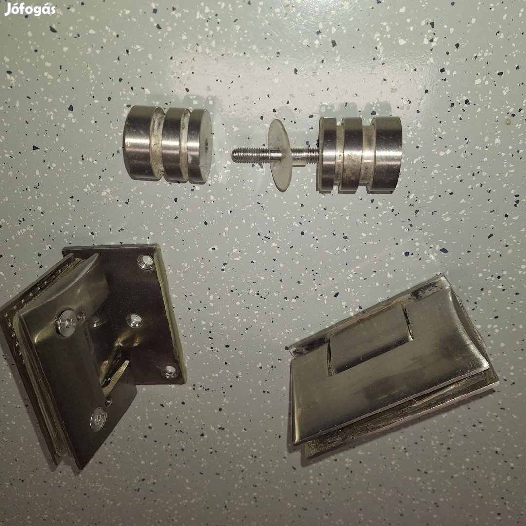 Üvegajtóhoz rozsdamentes anyagú zsanér és fogantyú (1 -1 pár ) eladó.