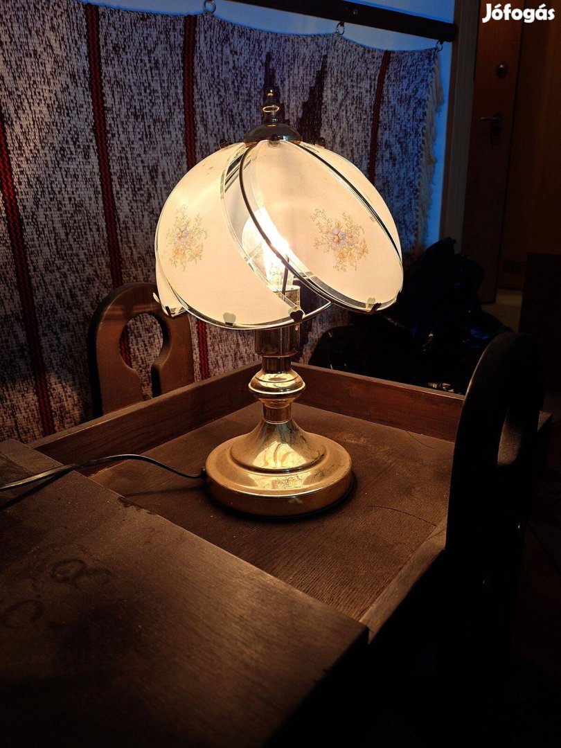 Eladó a képeken látható üvegbúrás virágmintás, fényerőszabályzós asztali lámpa.