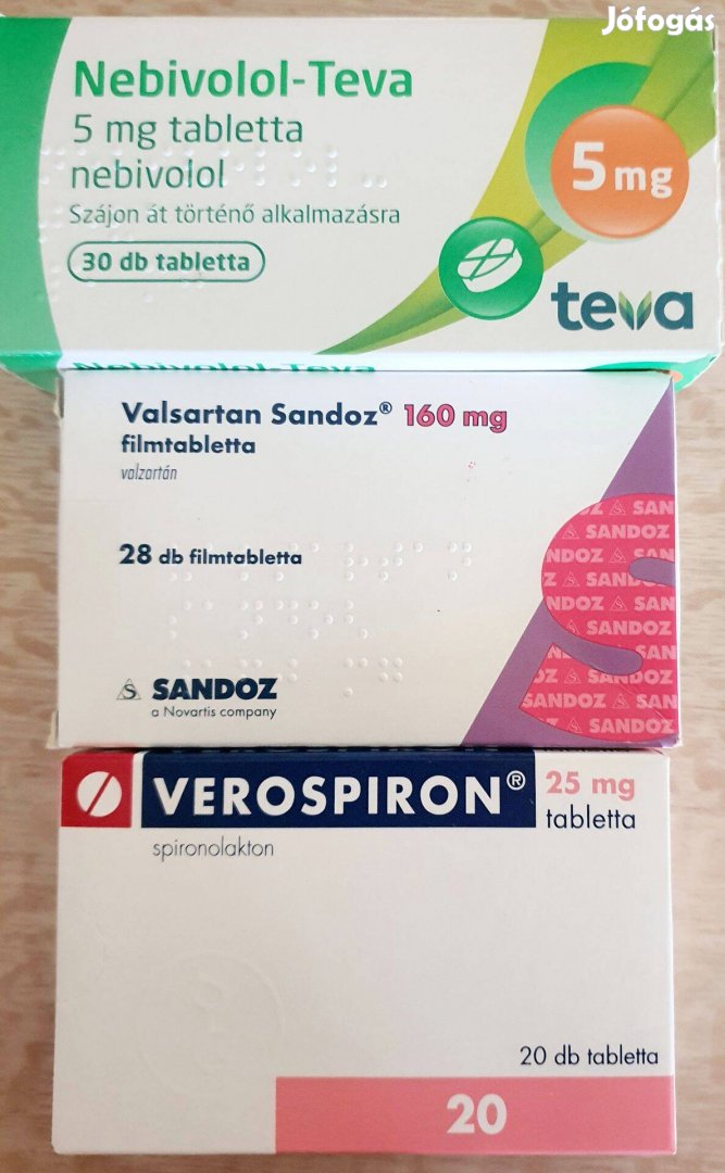 Valsartan Sandoz-160 mg-filmtabletta-28 db-10 doboz, Nebivolol Teva 5 mg tabletta-30 db- 4 doboz,Verospiron 25 mg-20db-3 doboz