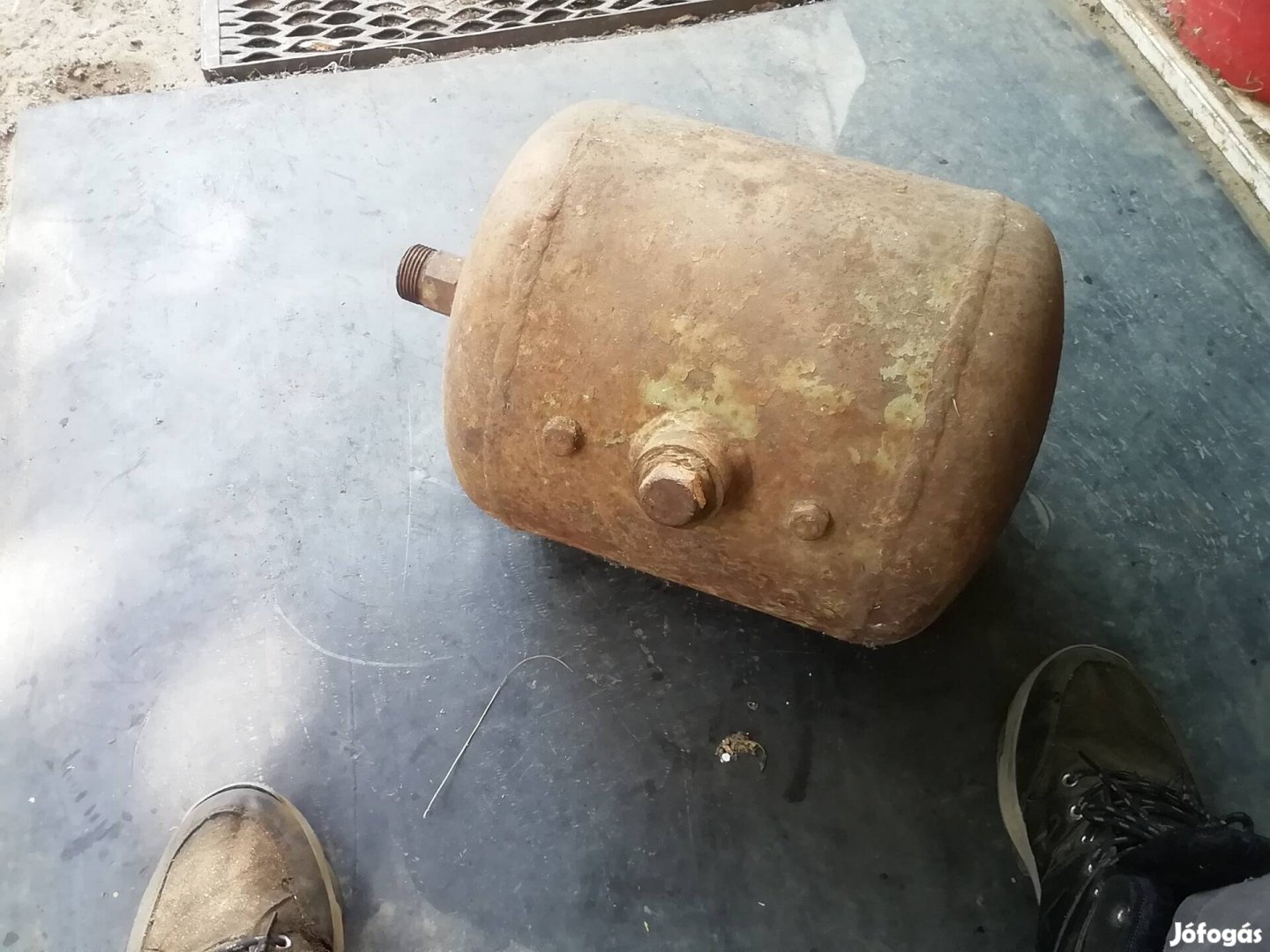 A képeken látható vas tartály eladó. Kb 15 l-es. Érdeklődni .