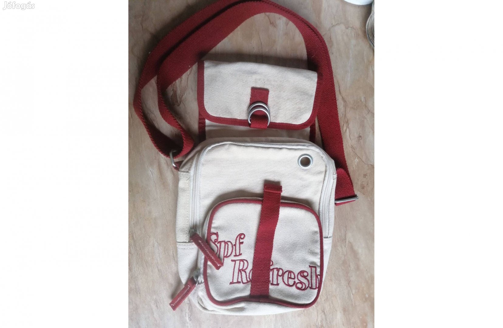 Bézs színű, bordó szegéllyel, és vállpánttal.