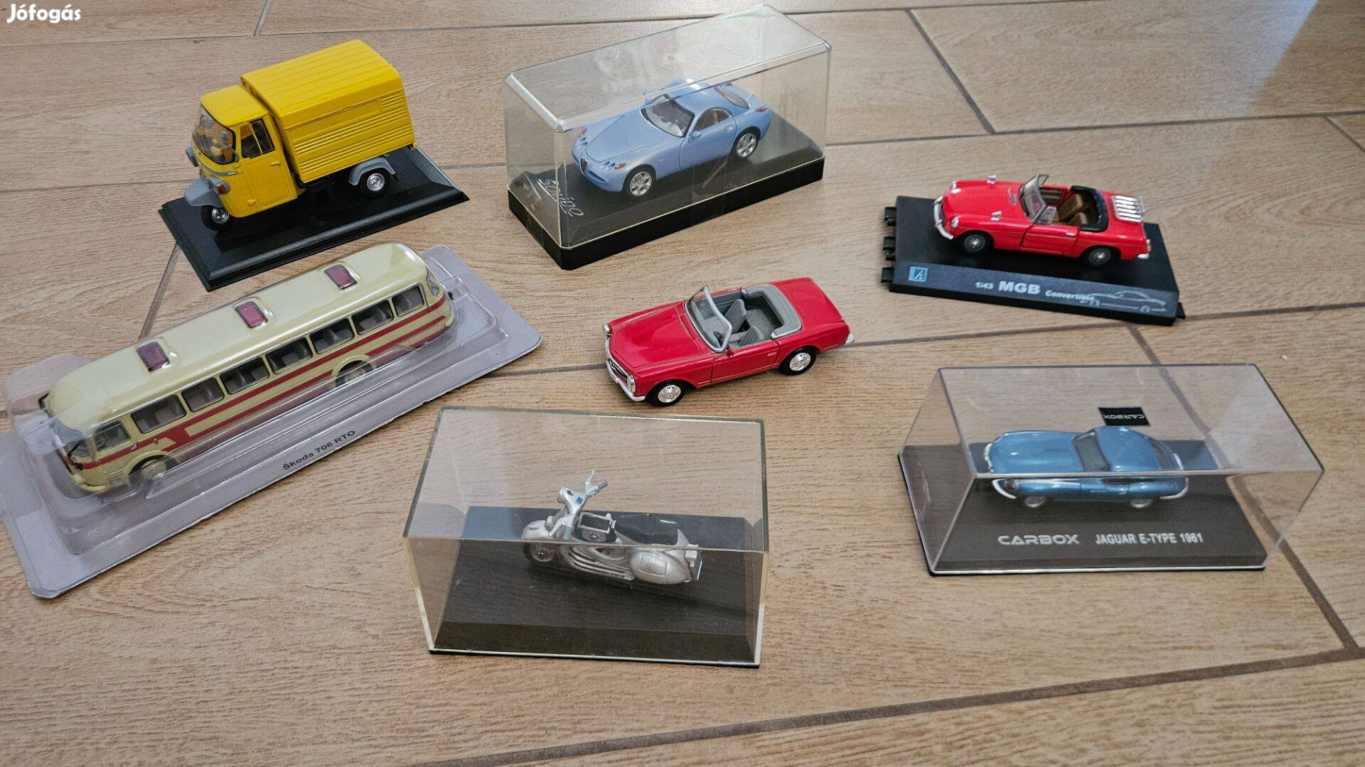 Vegyes méretarányú és gyártmányú modellek eladóak. Skoda busz 1/72 3500-, Alfa 1/43 5000-, Mercedes SL 3500-, MGB 1/43 3500-, Carbox Jaguar 1500-, Vespa PK 1500-, Vespa furgon 3000. Személyesen Dunaharasztiban vehető át.