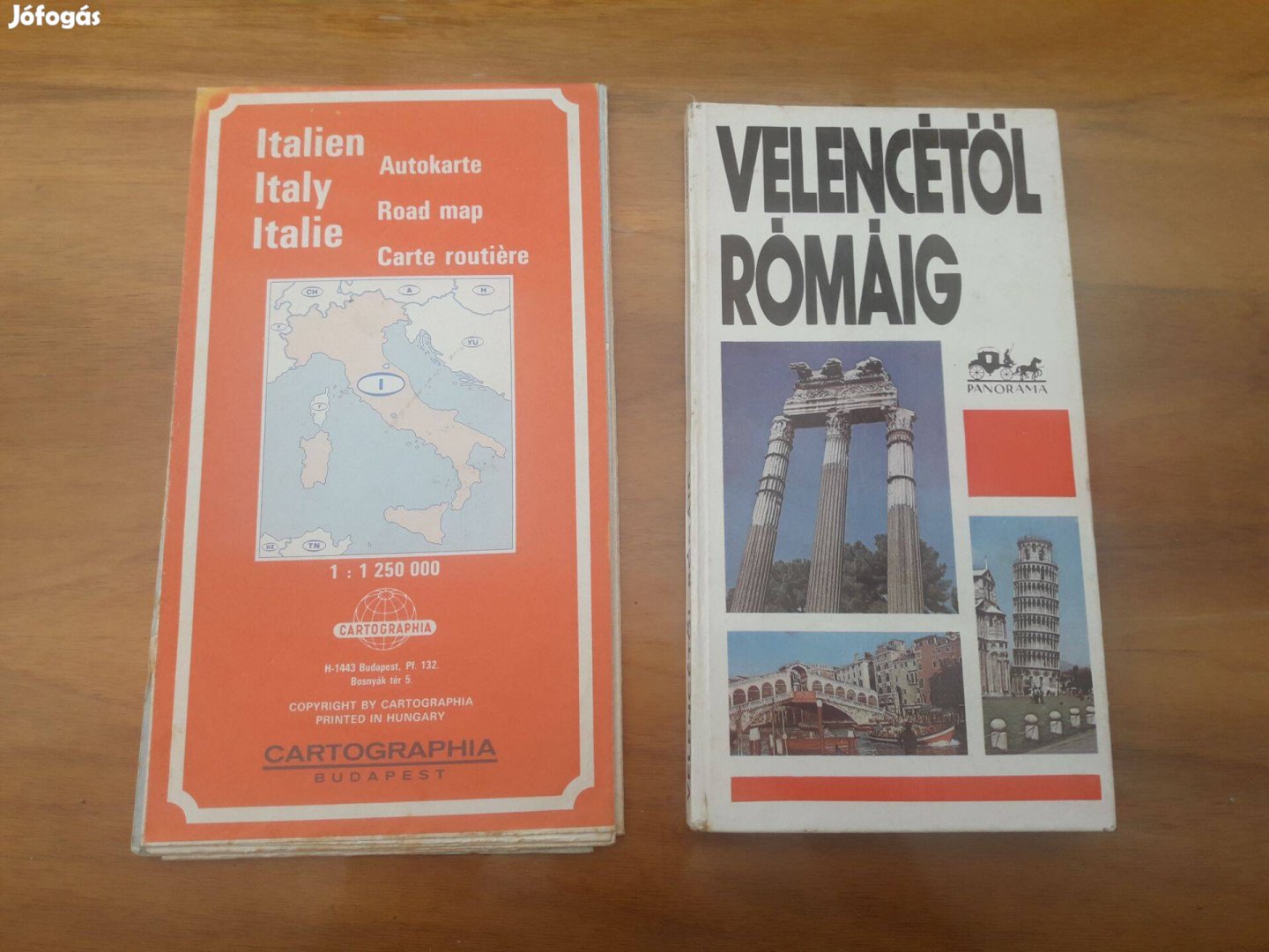 Eladó régi olasz autótérkép és Velencétől Rómáig könyv.