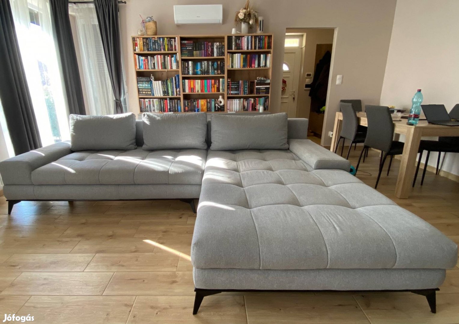 Eladó világosszürke XXX Lutczból vásárolt Carryhome L alakú sarokkanapé. Ágyfunkcióval és ágynemű tartóval felszerelve.