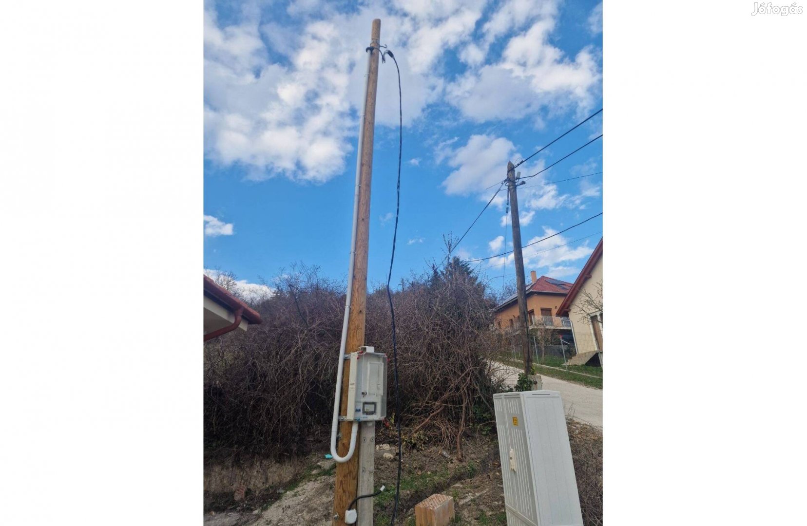 Eladó a képeken látható villanyoszlop betongyámmal, villamos mérőszekrénnyel és villamos szerelvényekkel együtt.