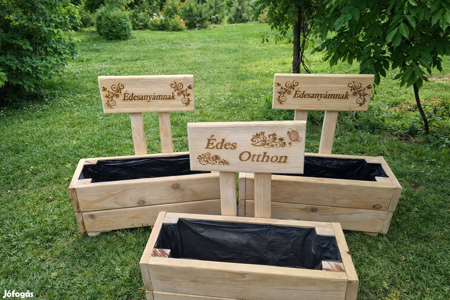 Virágtartó gravírozott táblával. Kért felirattal és mintával, megrendelésre készül.