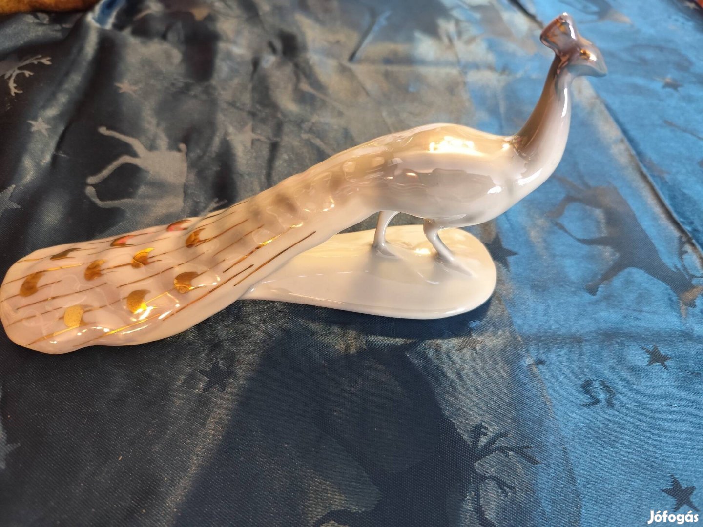 Vitange porcelán pávafigura, bolgár kerámia jó állapotú dísztárgy eladó.