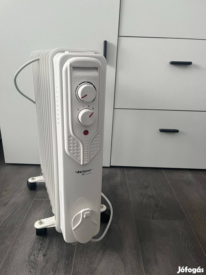 Kihasználatlanság miatt eladó 2 db Voltomat Heating olajradiátor 2500 W teljesítménnyel és 11 fűtőtaggal.