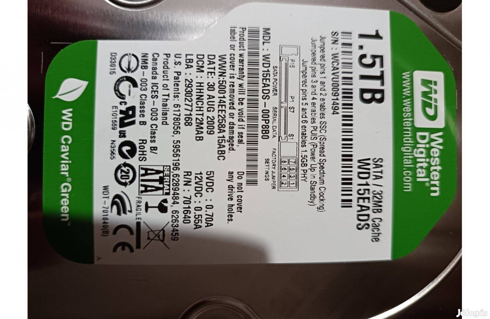 WD HDD 1,5 TB. alkatrész