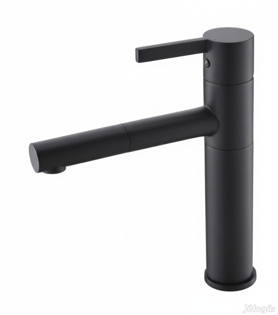 Welland FH-3366 magasított kialakítású mosdó csaptelep: modern de időtálló design, amit tovább erősít a nyitásnál hátrabillenő minimalista keverőkar. Méreténél fogva kényelmes használatot biztosító kialakítás jellemzi, magasabb mosdókagylók mögé is telepíthető. Anyaga magas minőségű sárgaréz és acél, hosszú élettartamot biztosító többszörös elektrosztatikus fekete porfestéssel, precíz kerámia keverőszeleppel és víztakarékos perlátorral. A vízszintes kifolyócső elfordítható, így a vízsugár felfelé is irányítható. Kihúzható fej: a csaptelep kiömlő része kihúzható 50 cm-es hosszúságig.
