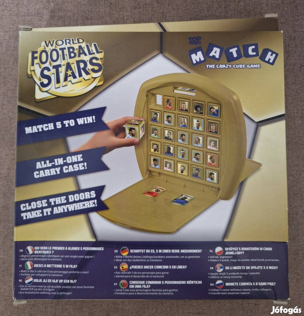 Hiánytalan,jó állapotú,nyomtatott magyar nyelvű játékleírással. 4 éves kortól, 2 játékos részére. A játék célja:Ha 5 kocka egy sorban egyezik, akkor pontokat kapsz.Minden sor egy egyezésnek számít.Az a játékos nyer,aki először szerez 5 (vagy 6) pontot.A sor lehet vízszintes,átlós vagy függőleges.A kockákon és a kártyákon 15 szimbólum található.Ha a sor megegyezik az egyik kártyáddal,több pontot kapsz. Számlát adok róla .Még több termék a weboldalamon: