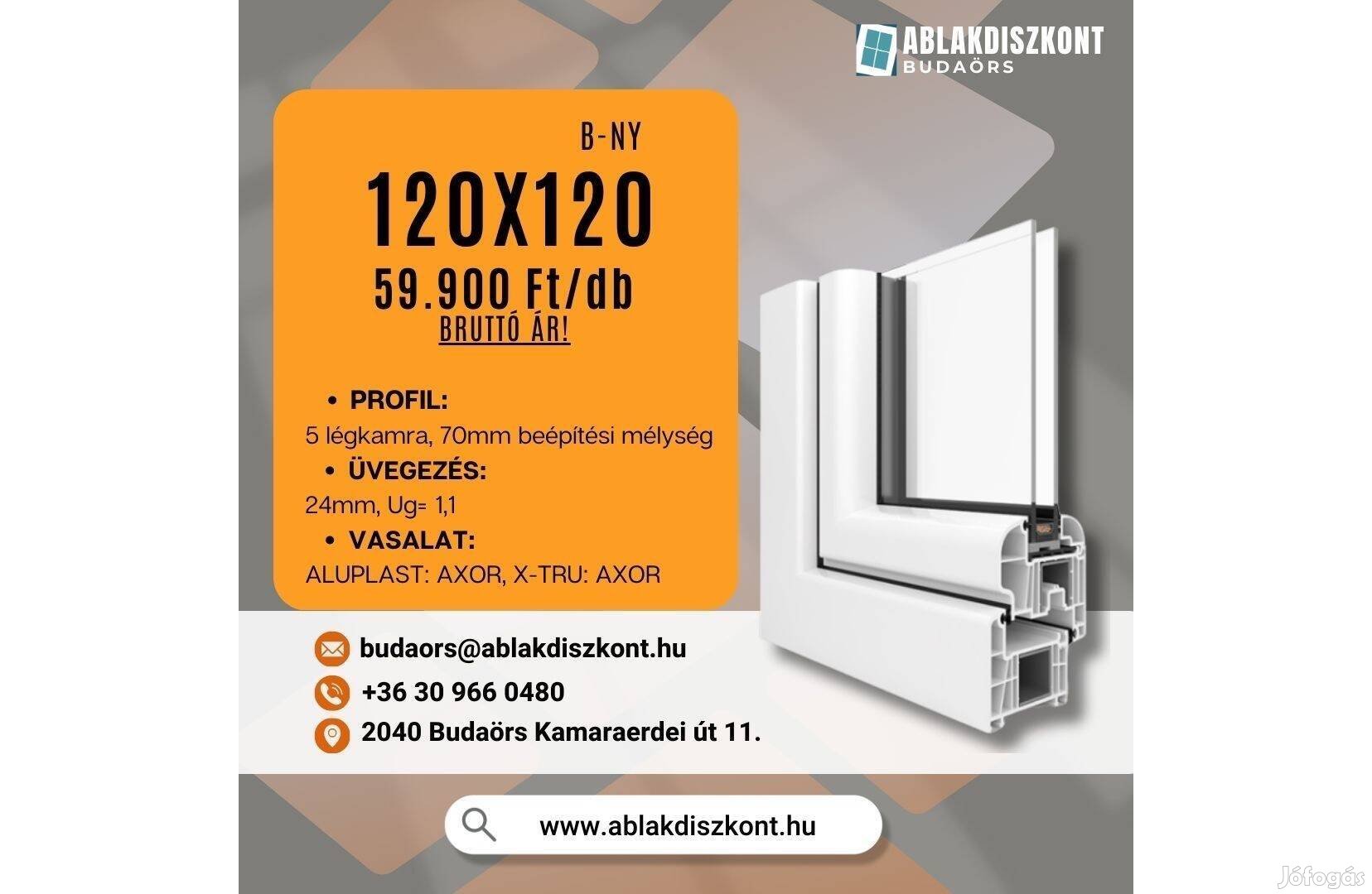 X-TRU 120x120 bukó-nyíló műanyag ablak 2 rétegű üvegezéssel raktárról