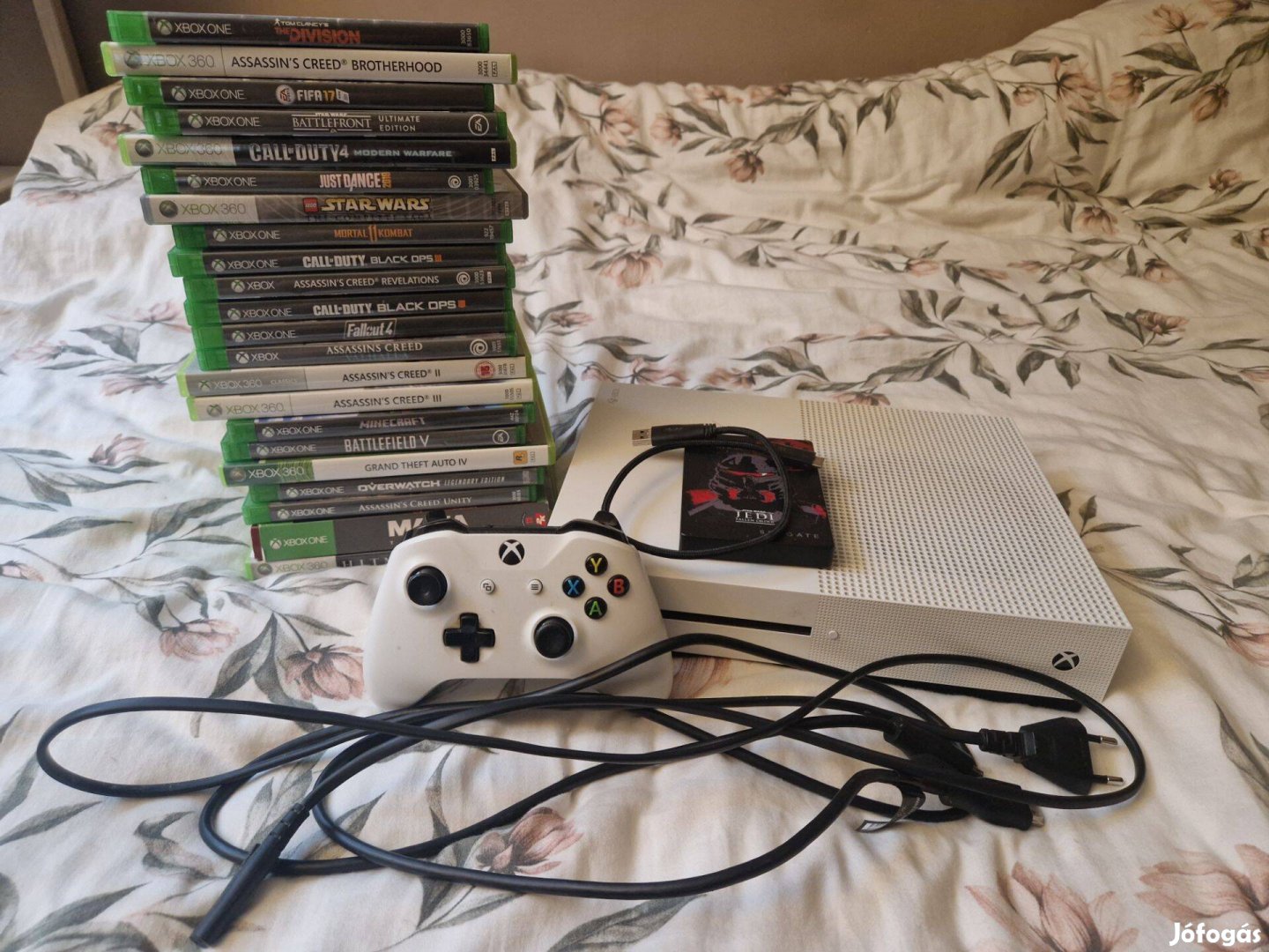 Xbox one S 500gb + 2tb külső merevlemez + 1 kontroller +22 játék