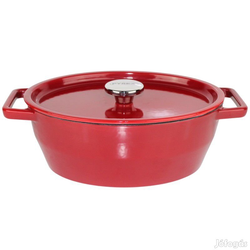 Minőségi PYREX zománcos ovális öntöttvas sütőtál bordó színben, belseje fehér, kb 29 cm hosszú.