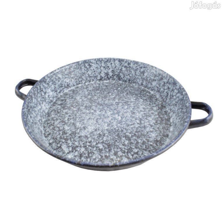 Zománcozott 30 cm átmérőjű kétfüles hússütő tál, cirmos belsejű szeletsütő