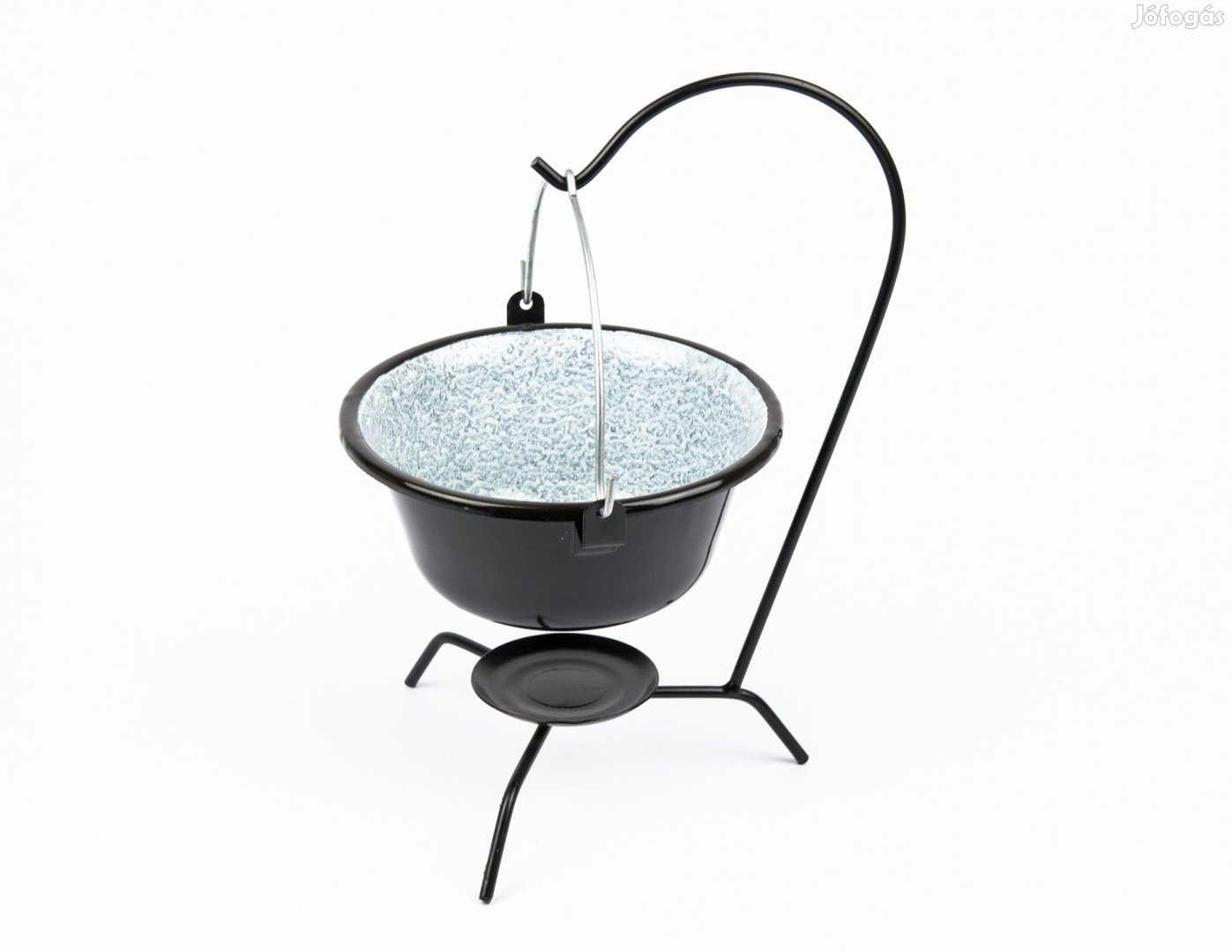 Zománcozott tálalóbogrács 0,8 literes, állvánnyal együtt