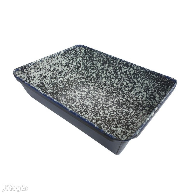 Zománcozott tepsi kb 23 × 17 × 5,5 cm, kívül kék, belül cirmos zománccal