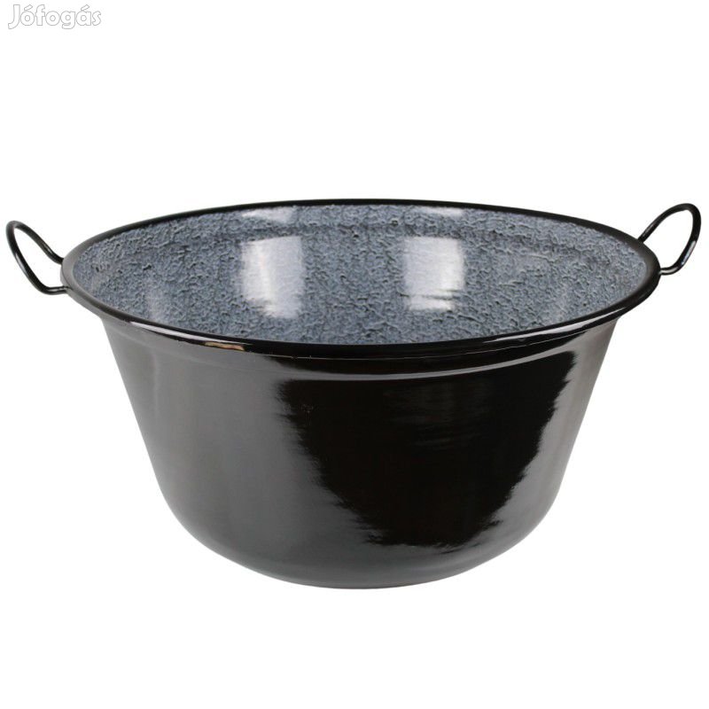 Fekete zománcozott üst cirmos belsővel 80 literes űrtartalommal, kb 66 cm belső átmérővel, 69 cm külső átmérővel, 36 cm magassággal.