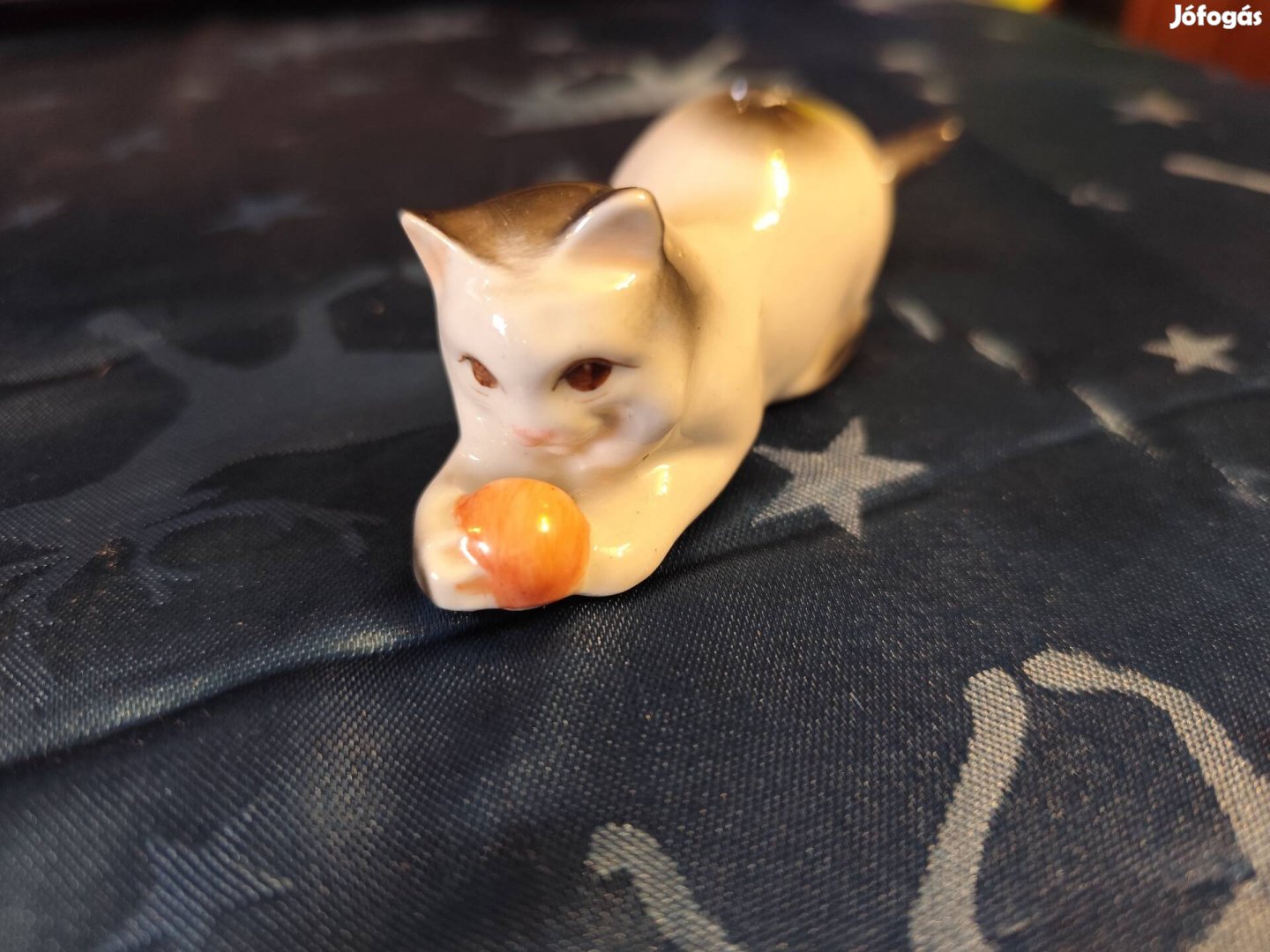 Eladó Zsolnay porcelán cica gombolyaggal.