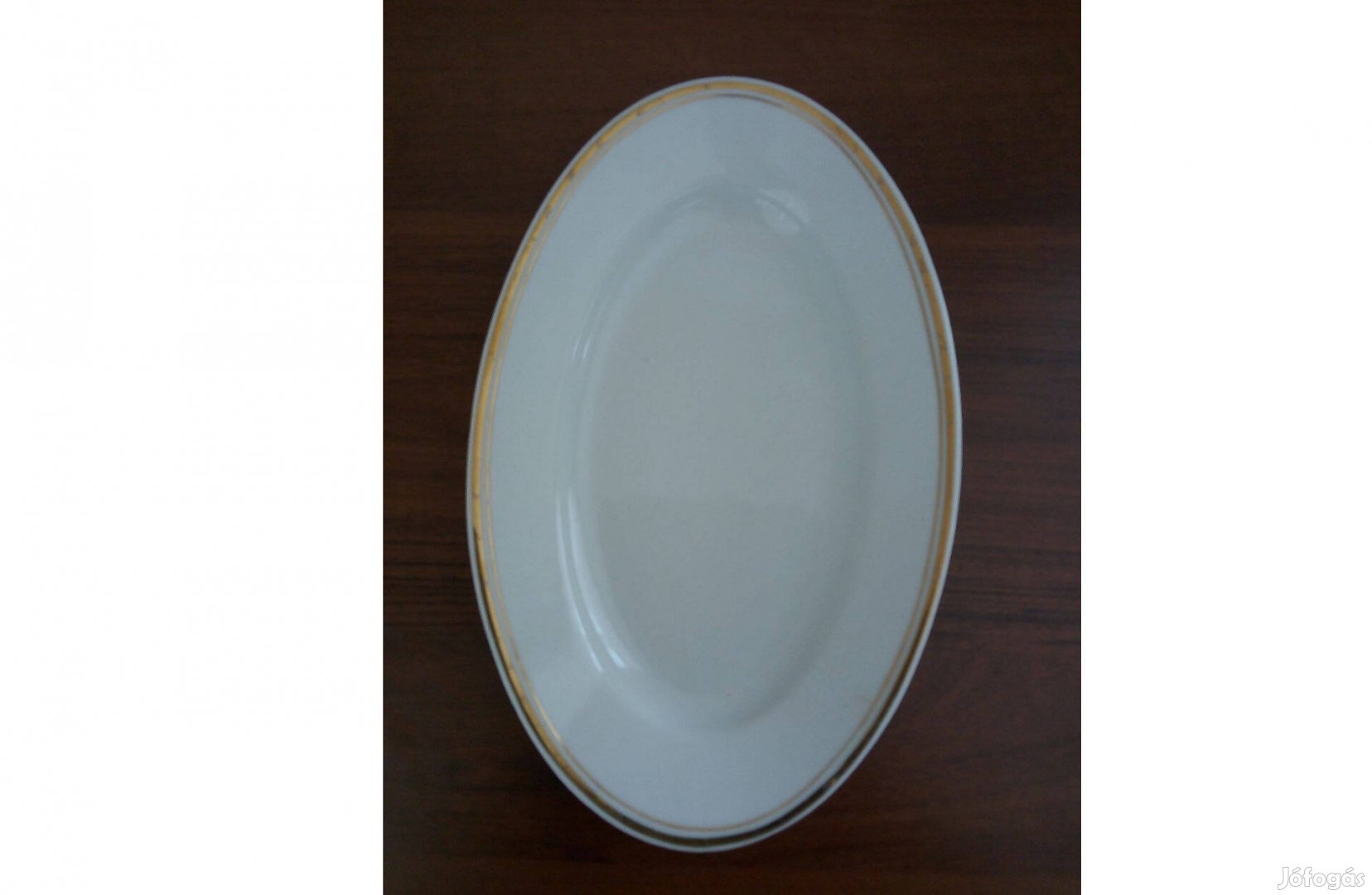Zsolnay porcelán kínáló tál, aranyszélű ovális pecsenyés tál