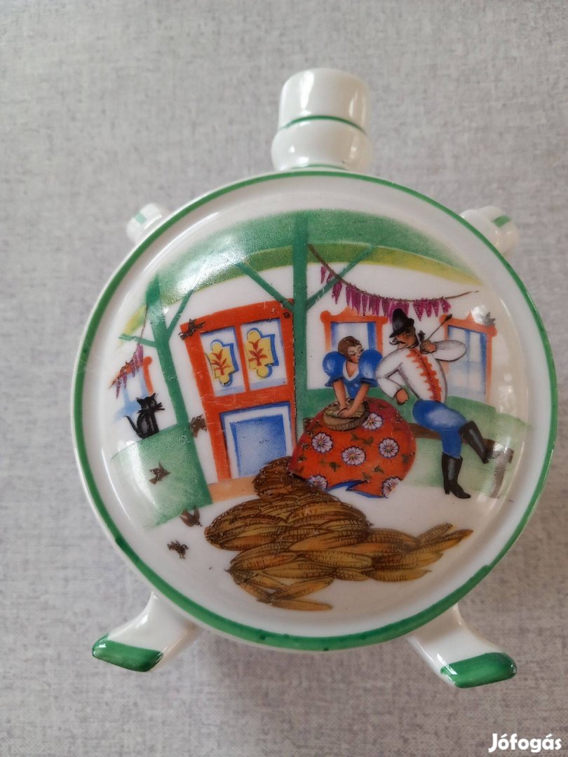 Zsolnay porcelán nagy pajzspecsétes kulacs 15cm hibátlan