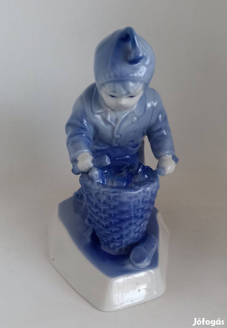 Zsolnay porcelán rőzsét gyűjtő fiú "Ritka" Festéssel!