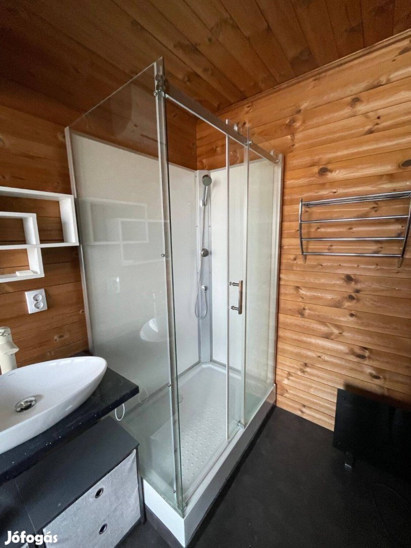 Jó állapotú, 80x120 cm-es komplett edzett üveg zuhanykabin zuhanypanellel és zuhanytálcával.