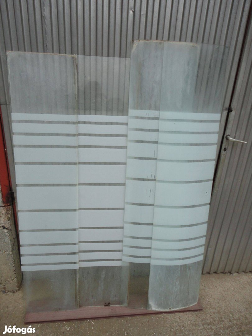 Eladó a képen látható, bontott zuhanyfülke üveg. A sík üveg mérete 34x154,5 cm, az íves (ajtó üveg) mérete 37x163 cm