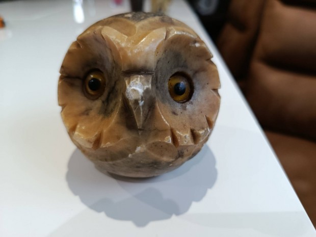 Olasz kézzel faragott alabástrom bagoly - Volterra - 9 cm