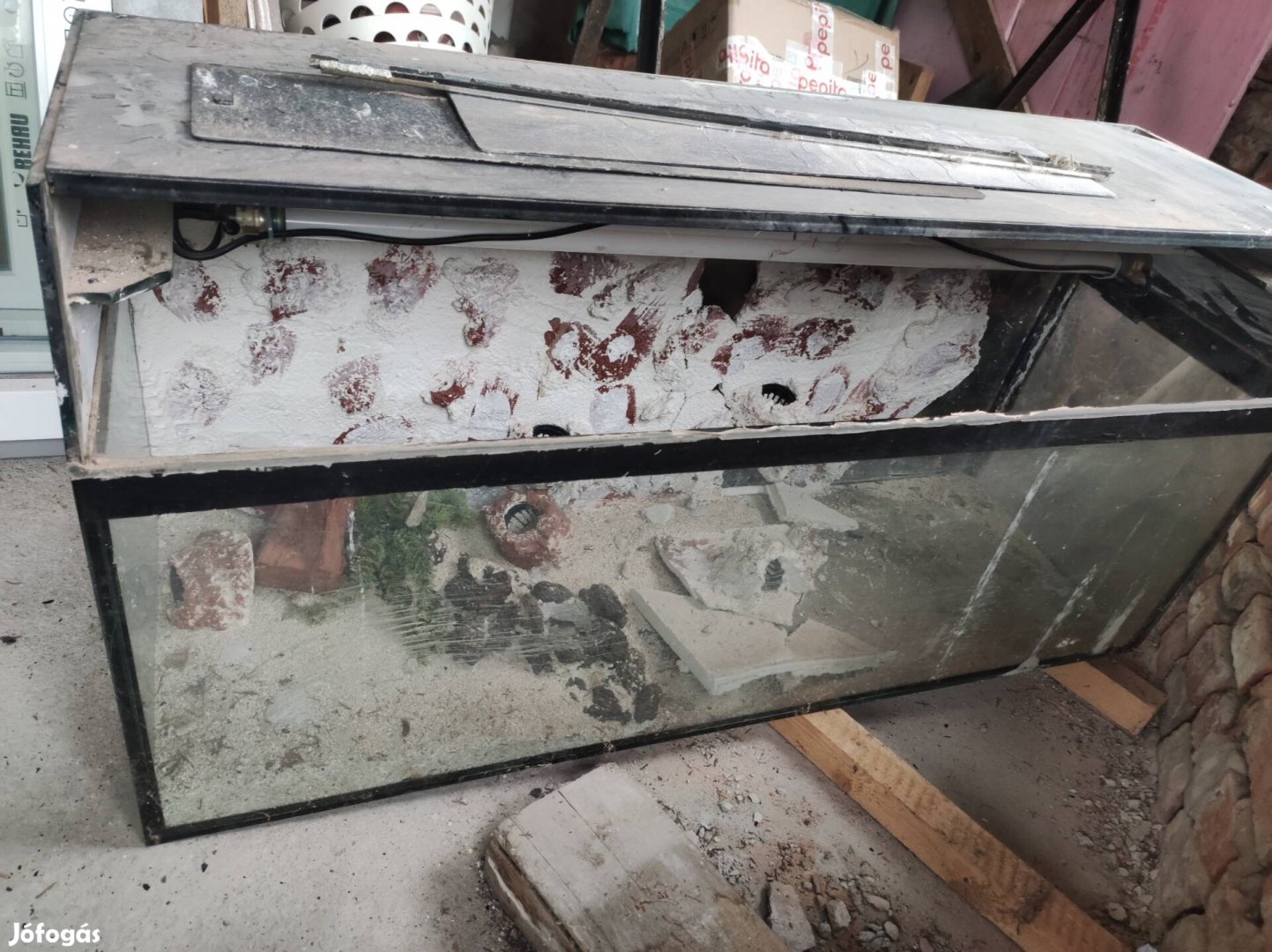 Eladó egy foglalkozós akvárium 40X120X58 magas. Tetején lévö üveg sarka el van törve. A diszités kezd leválni a hátsó falról. De amúgy tökéletes. 1 cm vastag üvegböl van