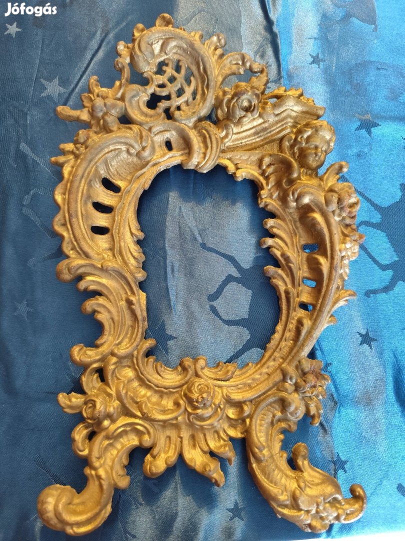 Antik francia bronz fésülködőasztal tükörkeret,rokokó stílusban. Angyal és virág motívumokkal díszített. Az eredeti tükör hiányzik belőle.