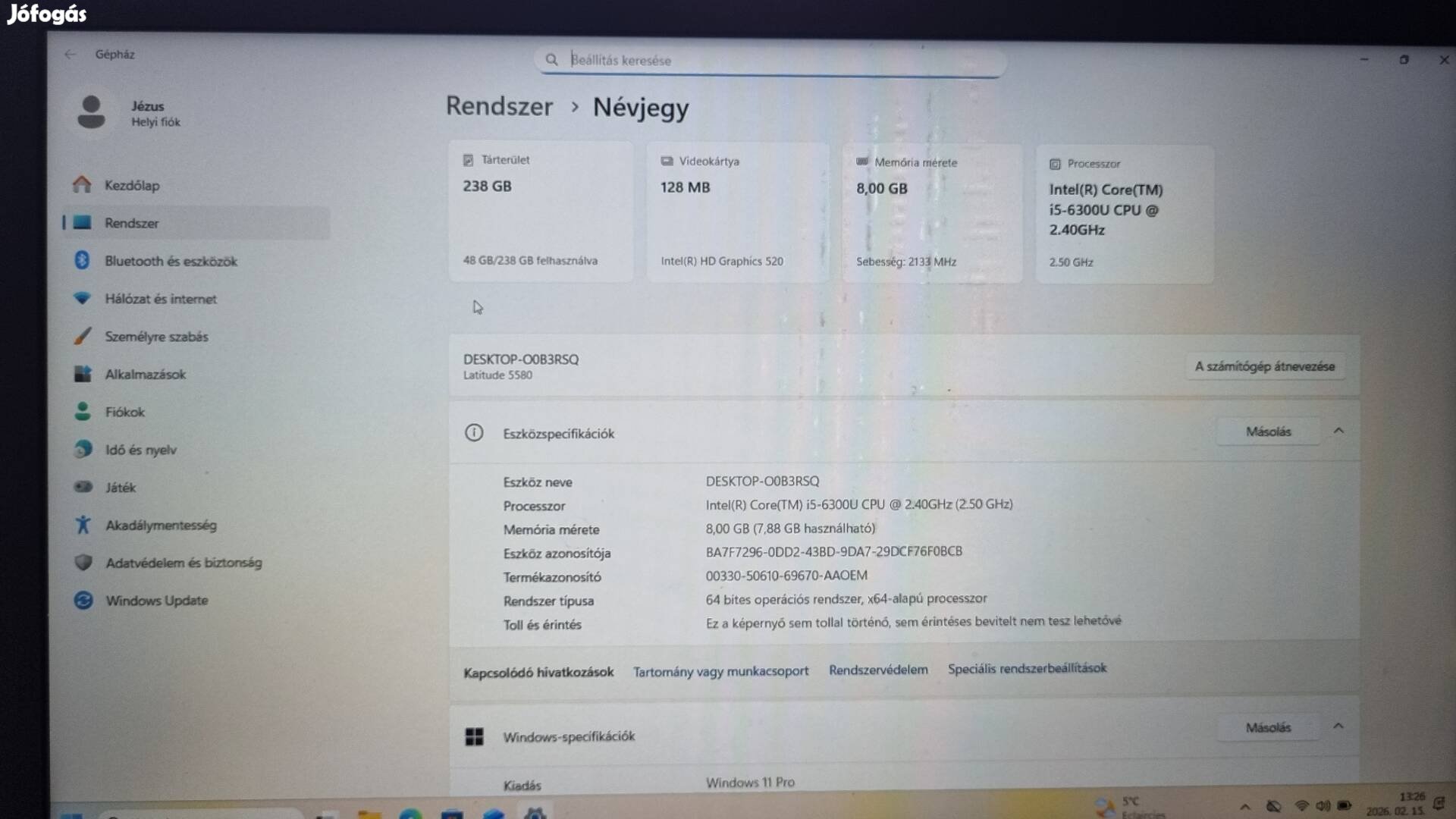 Eladó megkímélt állapotú Dell Latitude 5580 üzleti kategóriás laptop.