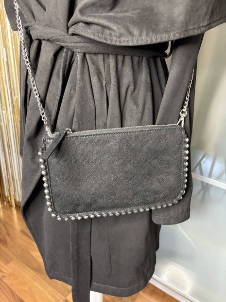 Fekete csillogó alkalmi boriték, válltáska, lánccal Új