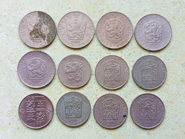Csehszlovákia 12 db Különböző Érme 2 3 5 Korona 1965-1991