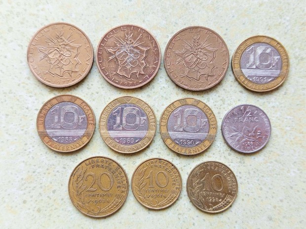 Franciaország 11 db Különböző Érme Centimes Frank Francs 1963-1998