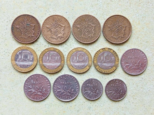 Franciaország 13 db Különböző Érme 1/2 1 10 Frank Francs 1960-1991