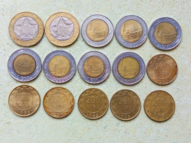 Olaszország 15 db Különböző Érme 200 500 1000 Líra 1978-1998