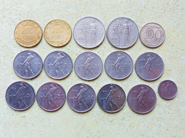 Olaszország 16 db Különböző Érme 50 100 200 Líra 1955-1994