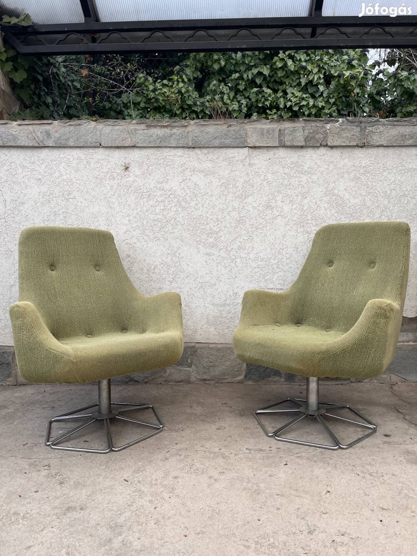 2 db régebbi fotel "piri" névre hallgatnak. nem szakadtak, nincs ki/szétülve, mai napig kifejezetten kényelmesek. A színe zöldes, a fotón vmelyest fakóbbnak tűnnek. Egy tisztítás azért rájuk fér, 1 éve félre voltak rakva. Darabja 22000 ft
