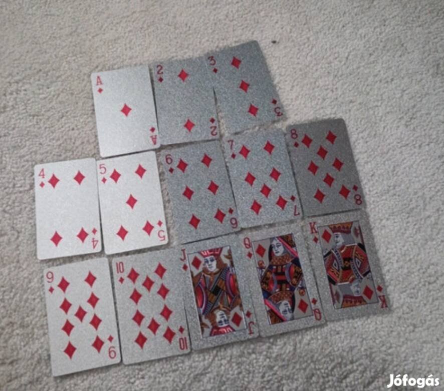 Egy teljes szett franciakártya, egyszer sem hasznaltam, sajnos hianyzik belőle egy joker(ezt már így vettem), ezért adom ilyen olcsón. Ezen kívül teljesen jó állapotú.