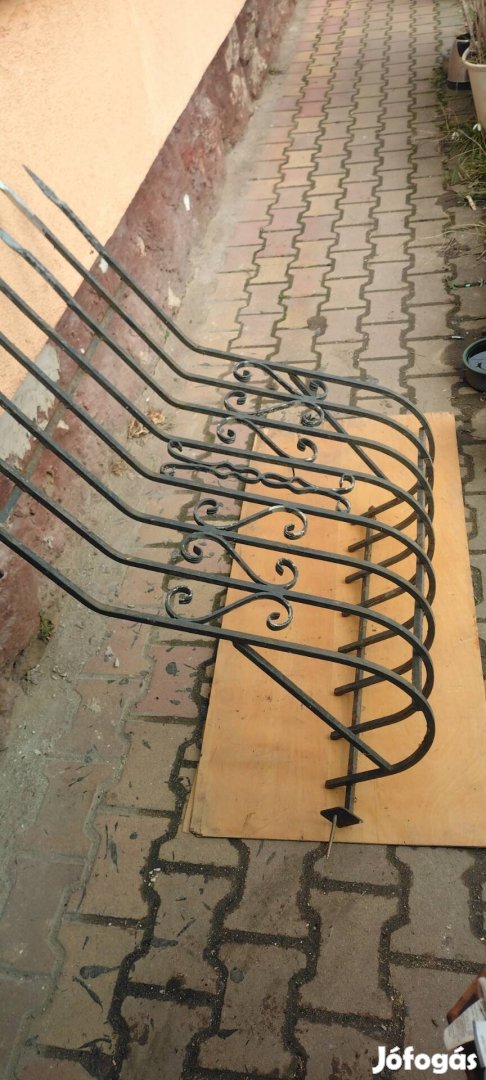 Eladó egy bontott fém, hajlított díszrács anyaga tömör 10x10 mm-es négyszögvas, magasság 110 cm, szélessége 71 cm, mélysége 30cm
