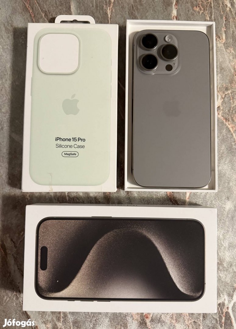 Eladó iphone 15 Pro - 128 GB - Natúr titán + eredeti Apple zöld tok