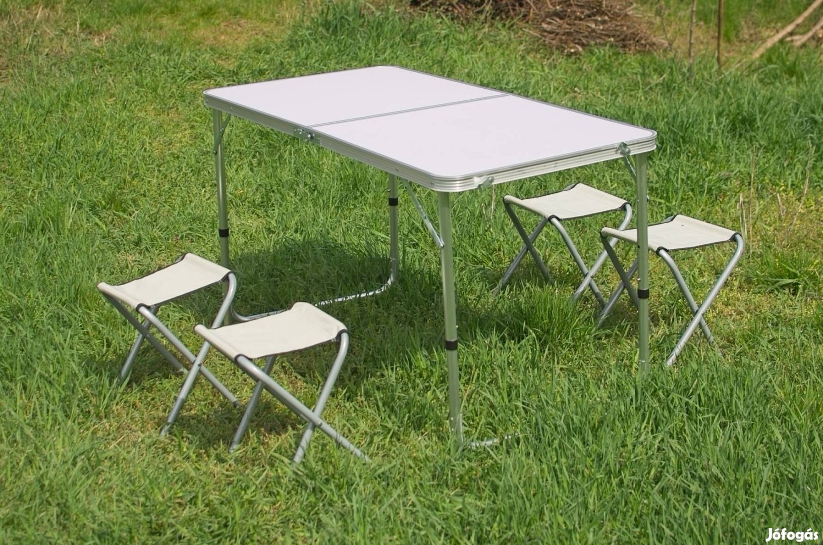 Kemping asztal 4 székkel. Magassága 2 szinten állítható. Székekkel együtt összecsukható, könnyű, hordozható.