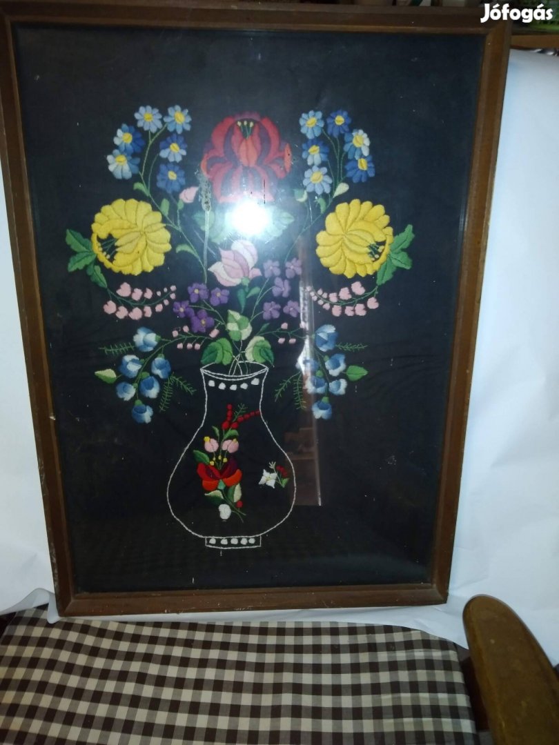 Kézi hímzésű virág mintázatú kép jó állapotú eladóvá vált